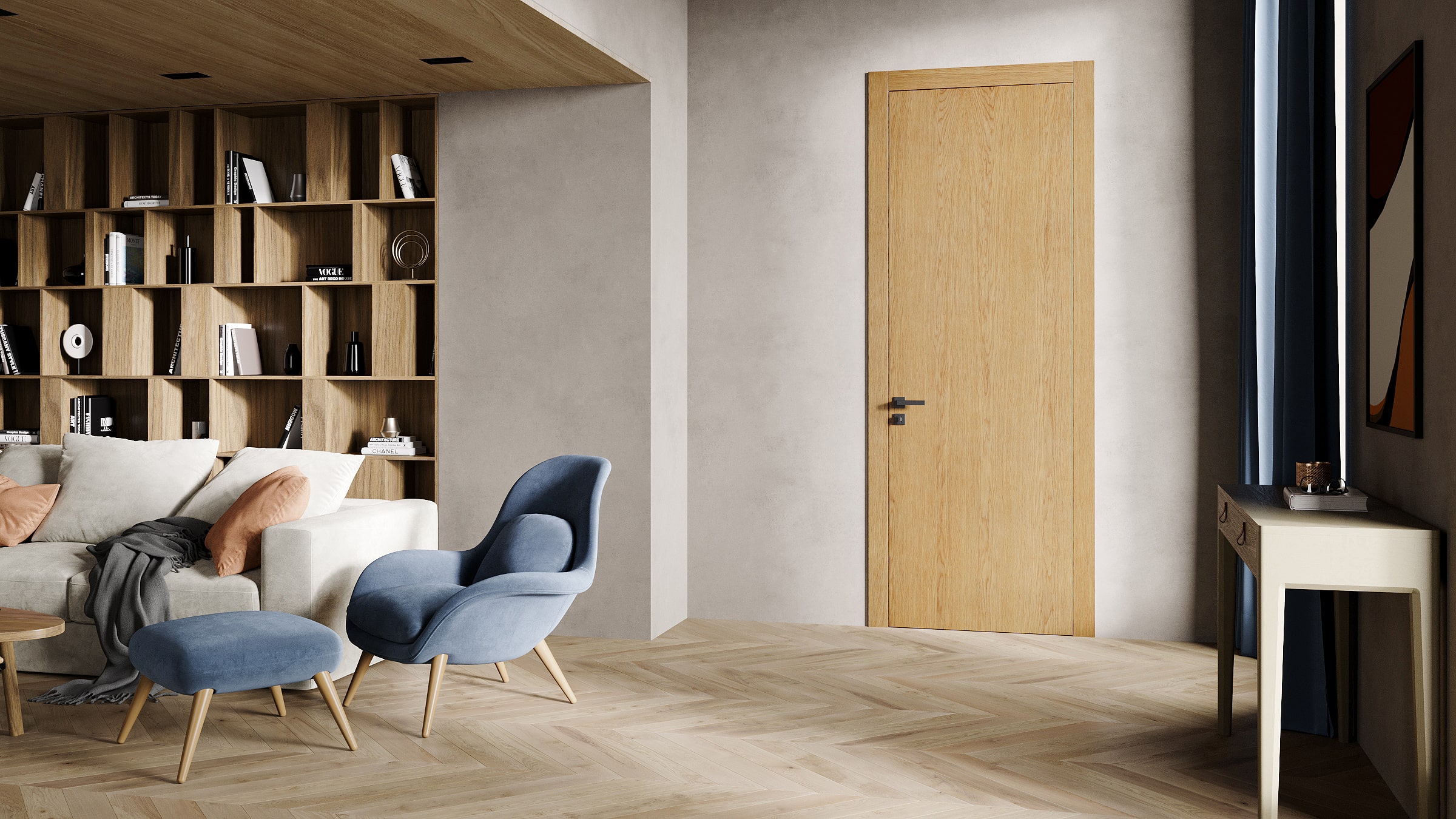 Планум — большие плоскости и безупречно выполненное покрытие максимально раскрывают красоту выбранной отделки на полотне. Двери Планум могут выступать как самодостаточным интерьерным решением, так и дополнением к уже существующим коллекциям, а также они идеально сочетаются с гладкими стеновыми панелями Волховец.