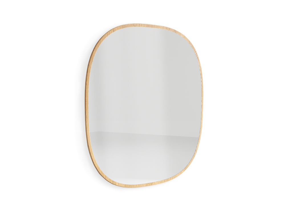 Стильное зеркало гармонично дополнит современный интерьер спальни, гостиной или коридора. Аккуратная рама, обрамляющая зеркало, полностью изготовлена из массива дуба, что делает конструкцию прочной и долговечной. При этом край рамы остаётся утончённым и лаконичным. Натуральные матовые оттенки дуба и округлые формы наполняют пространство красотой природы.