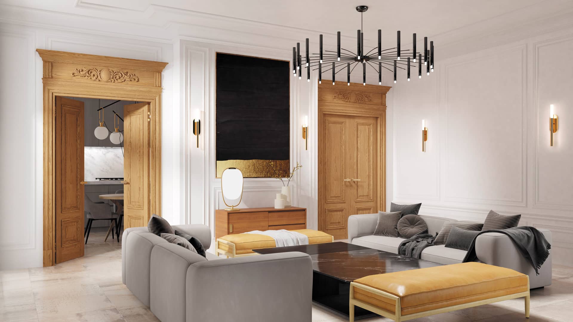 Коллекция дверей из массива ценных пород дерева с объёмными элементами на полотне. Отличительной особенностью коллекции является декоративное обрамление портала, повторяющее архитектурные формы XV века.
